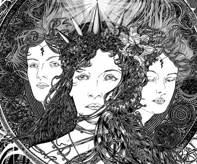 This piece was the first completed of my goddess series. Hecate is one of the most ancient and powerful goddesses from Greek mythology. She comes in triple form; the maiden, the mother and the crone and is the ultimate goddess of creation and female energy. She is still worshipped today, within wiccan spirituality, where she is asked for her protection during rituals and spells.